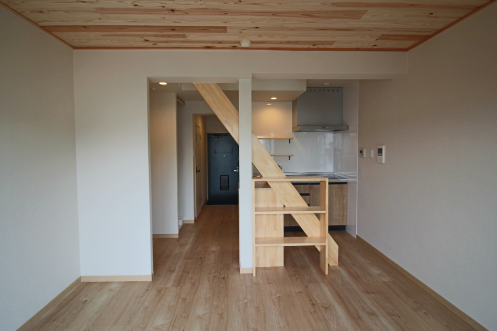 弊社が過去に手掛けたマンションにも、同様の1Kでロフト付のマンションがあるが、そのBefore/After(HP内_https://meisei-kousan.com/archives/2148)を見たお施主様よりリノベーションのご依頼をいただいた。