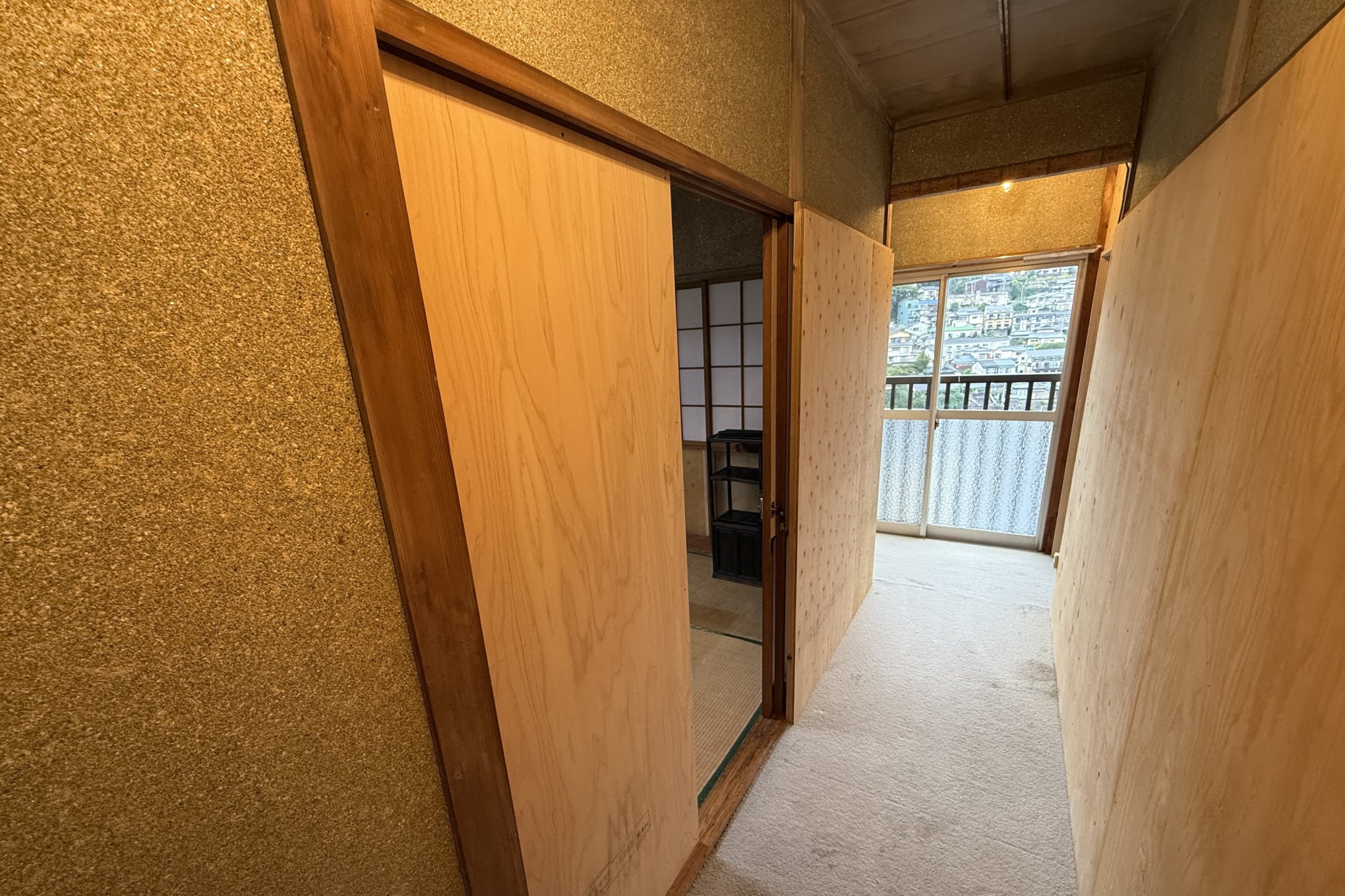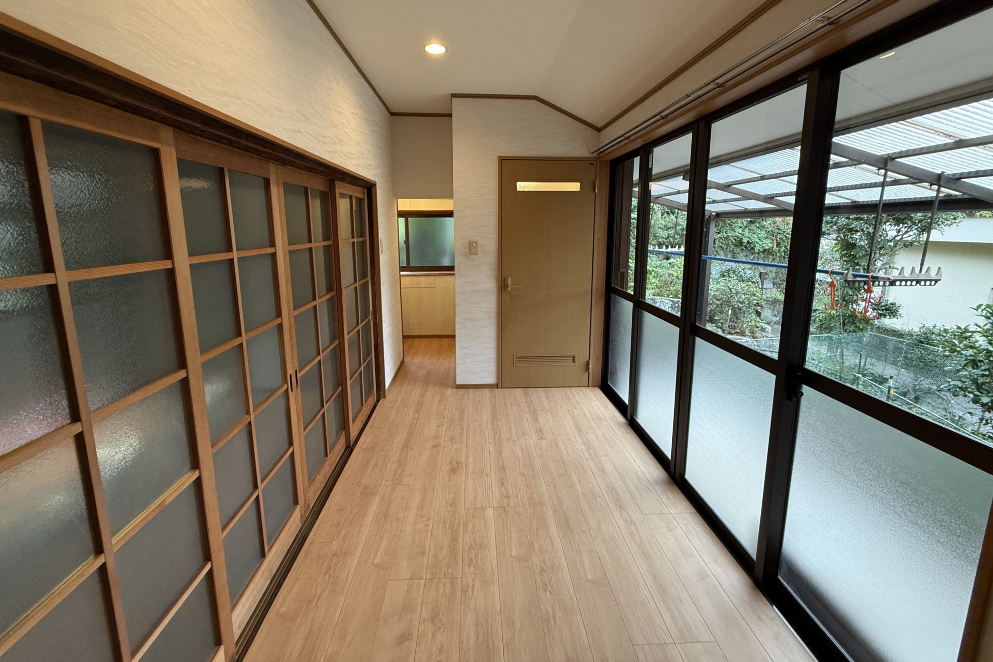 リノベーション後は、入口部分は確保したまま、部屋と部屋の間には壁を設けたり、廊下と面している部分の障子・襖はそのままで、外側に壁となる板を設置した。